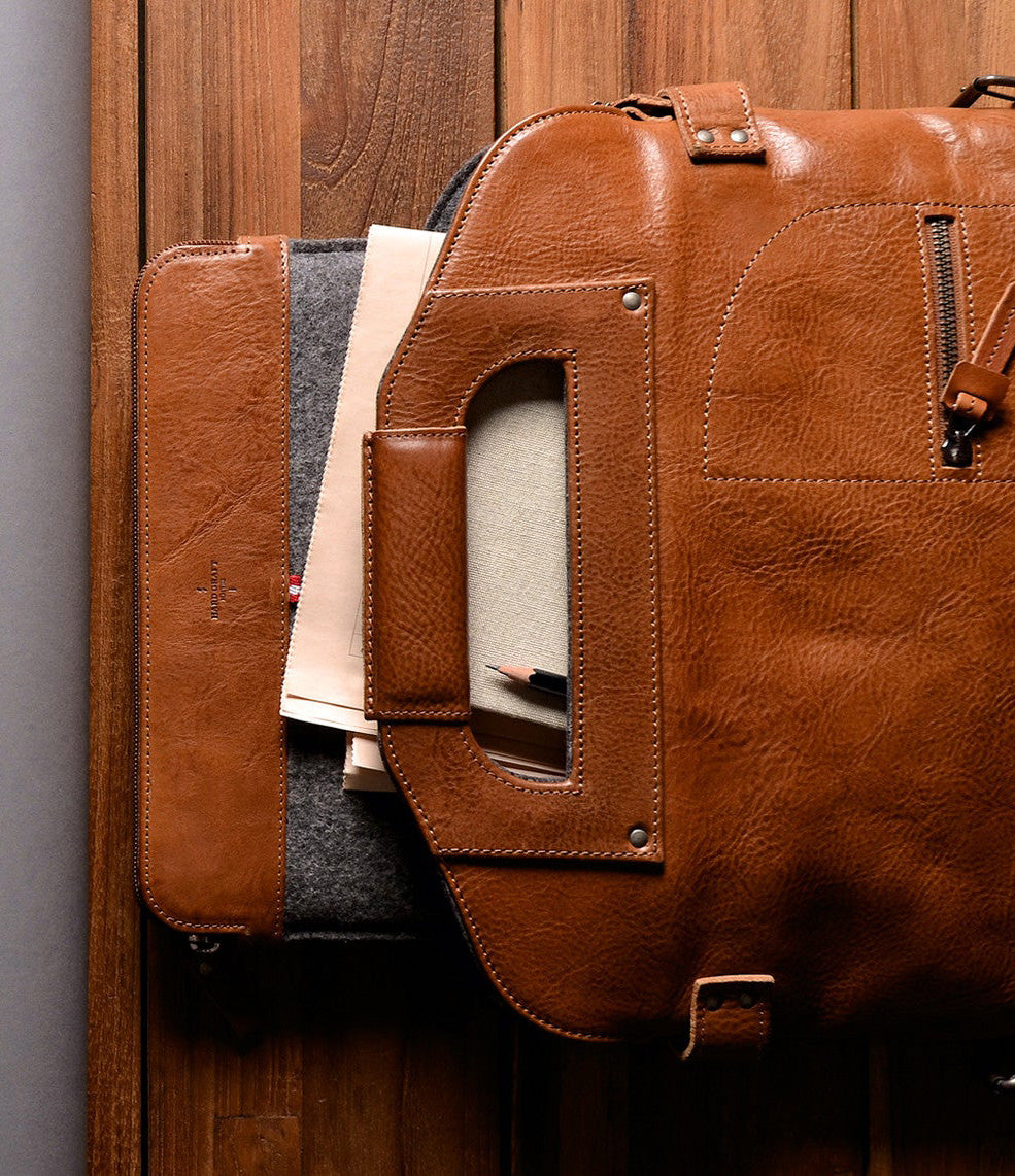 We've crafted this multi-use leather laptop bag to be as versatile as possible, which is a good thing because you'll never want to be without it. Carry up to a 17” laptop and accessories as a vertical briefcase, shoulder bag, or the most stylish backpack you've ever had.
